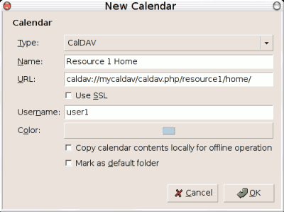 , enter your user name for DAViCal and click "OK".If you have problems with Evolution, you will need to quit evolution, remove the cache file which will be in ~/.evolution/cache/calendar/ and restart. If you still have problems try doing that, but killing evolution-data-server in addition.