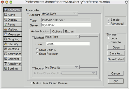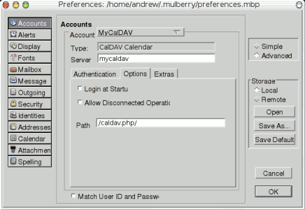 Note that Mulberry has a complex user interface. When I wrote this I went back into Mulberry and initially thought that DAViCal had regressed somewhat and that these instructions didn't exactly work... :-) It turned out that these instructions worked just fine when I followed them to the letter the next day. Go figure. I think I need to record some screenshots of this one...