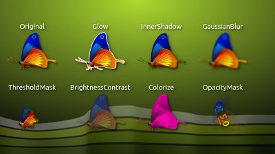The Qt Graphical Effects module provides a number of ready-made effects for use in Qt Quick applications, including soft drop shadow, blur, glow and colorize. |
